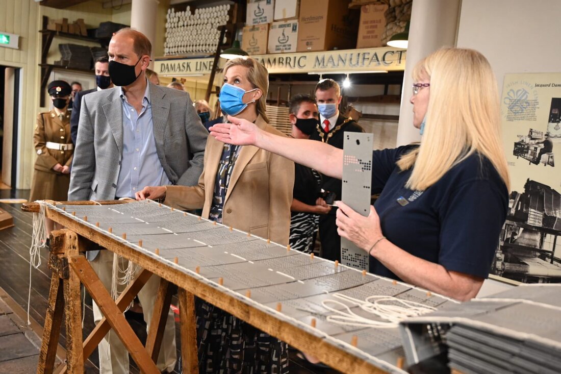 The Earl and Countess visited Lisburn Museum, undertaking a tour of its award-winning ‘Flax to Fabric’ exhibition, tracing the history of linen production in Ulster. Their Royal Highnesses also viewed live spinning demonstration. During their visit, The Earl and Countess had the opportunity to view the design and watch the museum’s handloom weaver weaving a damask linen napkin commissioned to mark the granting of Royal status to nearby Hillsborough Village