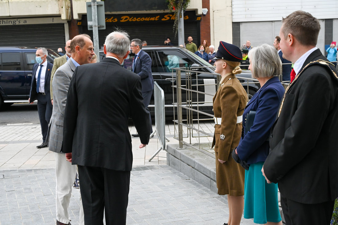 The Lord-Lieutenant of County Antrim, Mr David McCorkell, received Their Royal Highnesses The Earl & Countess of Wessex at the Irish Linen Centre & Lisburn Museum, Lisburn, this afternoon. The Lord-Lieutenant introduced TRHs to Mayor of Lisburn & Castlereagh City Council, Alderman Stephen Martin, and Chief Executive, David Burns.