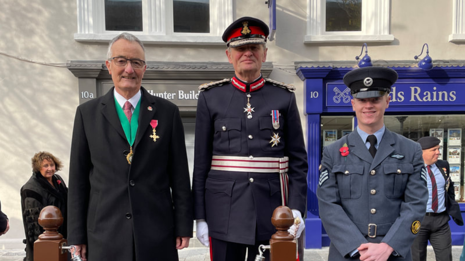 • Lisburn – Mr Freddie Hall, OBE, QGM, DL, who was joined by one of the Lord-Lieutenant Cadets, Adam Barr