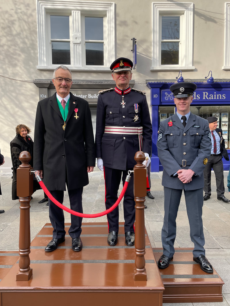 The Lord-Lieutenant of County Antrim, Mr David McCorkell, led the County in the Act of Remembrance in Carrickfergus this year. For the first time, The Lord-Lieutenant laid a wreath on behalf of His Majesty The King. The Lord-Lieutenant then took the salute.